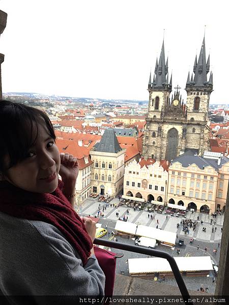 請大家務必記得!一定要上來鐘塔上面喔!因為風景超漂亮的!可一覽城市美景,可以看到整個布拉格城市的樣貌,就像在我們在書上跟電視裡面看到一樣異國風情,看臺每個不同角度都有不同風貌帶給旅客不同視覺角度體驗,明