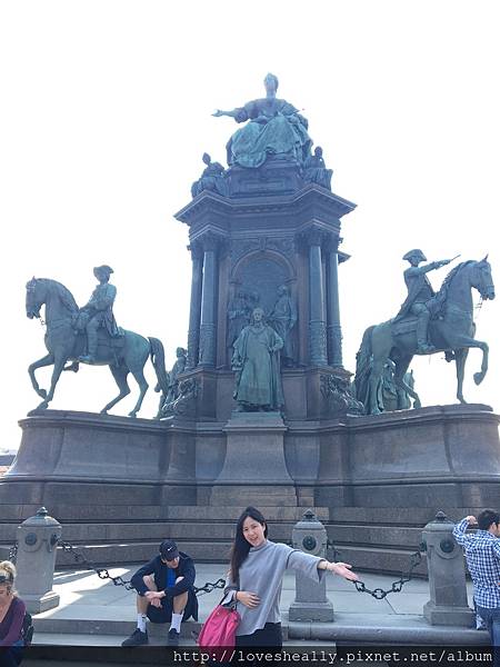 這座銅像真的很厲害,它只有後面馬的兩隻腳在支撐,算是非常高難度製作的銅像,格格就在照片下面喔!