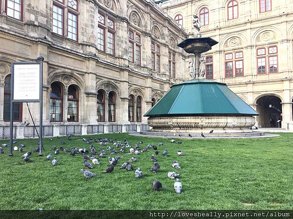 就在離維也納舊城區不遠處,看到這座充滿文藝氣息的建築物坐落在十字路口,草皮上還有一堆鴿子,不要懷疑,就是知名的維也納歌劇院,是歐洲最重要的歌劇院之一。
