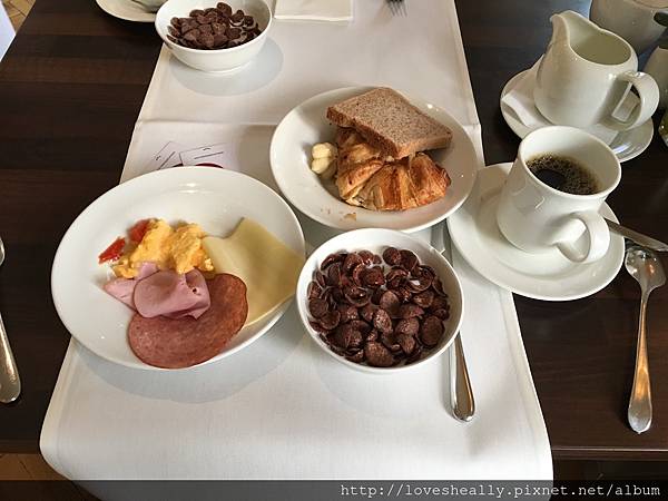 早上飯店的早餐兒,最後一餐歐陸式早餐,其實發現我自己每天早上都吃差不多的東西,哈哈哈哈哈,基本上就是黑咖啡配一些麵包,然後一定會搭配各種起司,最重要的要吃牛奶加巧克力脆片!