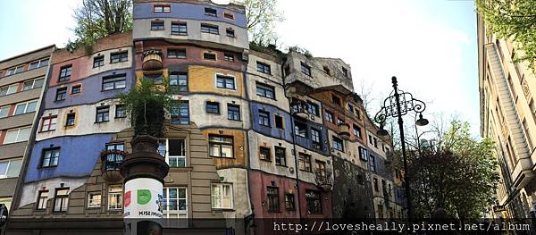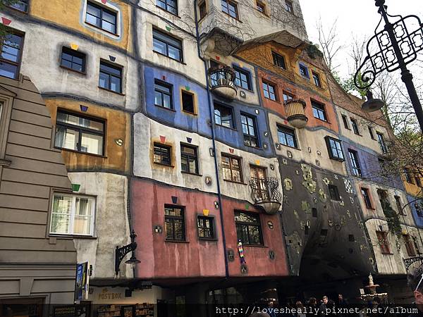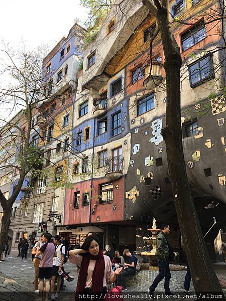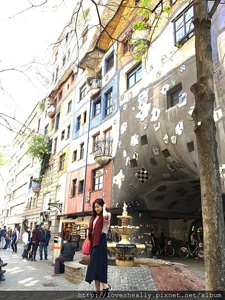此為二十世紀藝術怪傑奧地利著名畫家兼建築師弗利登斯萊希·百水設計,百水先生的曠世巨作,五顏六色的房子,特立獨行標新立異在小鎮上,真的很奇特,維也納當地居民更稱之為古怪屋或是保齡球木瓶的房子,而設計概念除了搭配五顏六色的色塊不規則劃分,也沒線寮區分設計也沒有規則不用量尺的建築物,大概是最吸引人前來一探究竟的特色之一!而百水公寓附近也開設許多周邊商店可以逛逛。 百水公寓內部仍有居民居住,所以只能參觀其外觀。